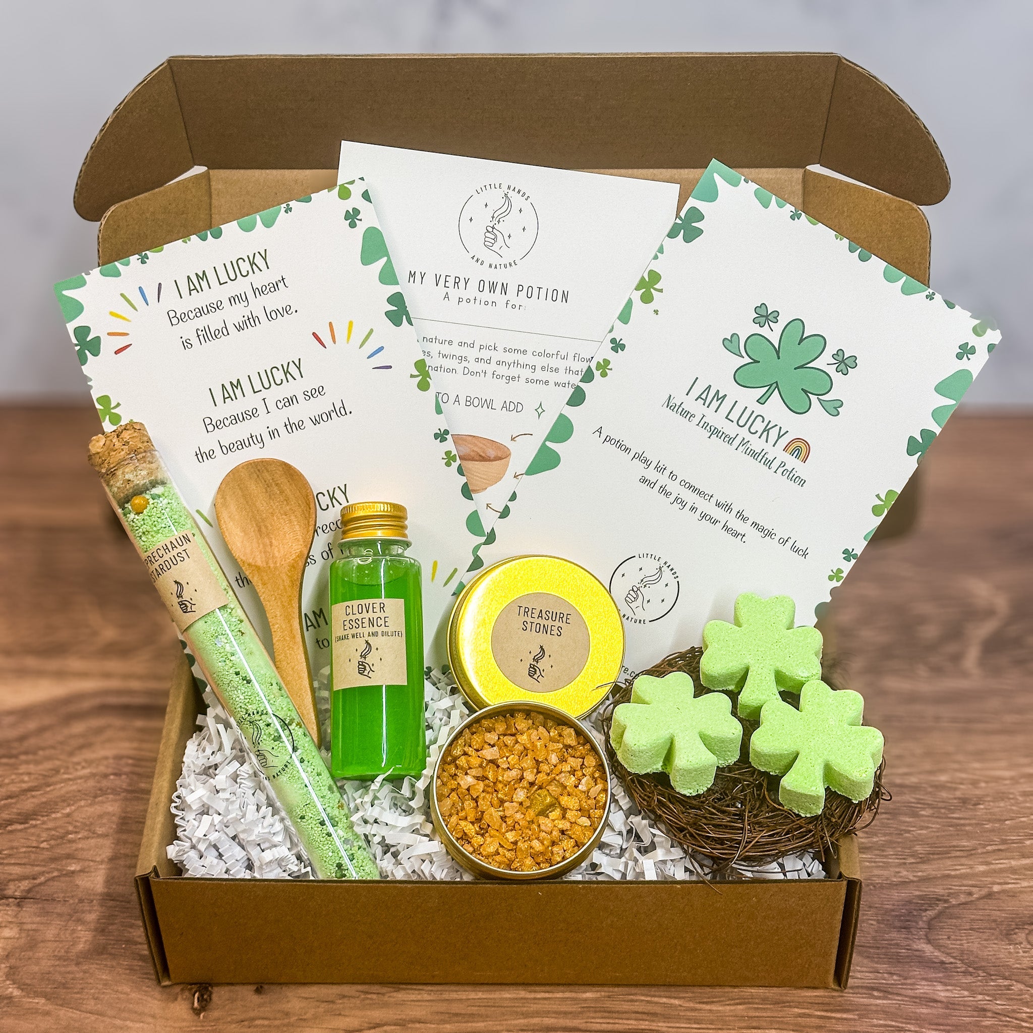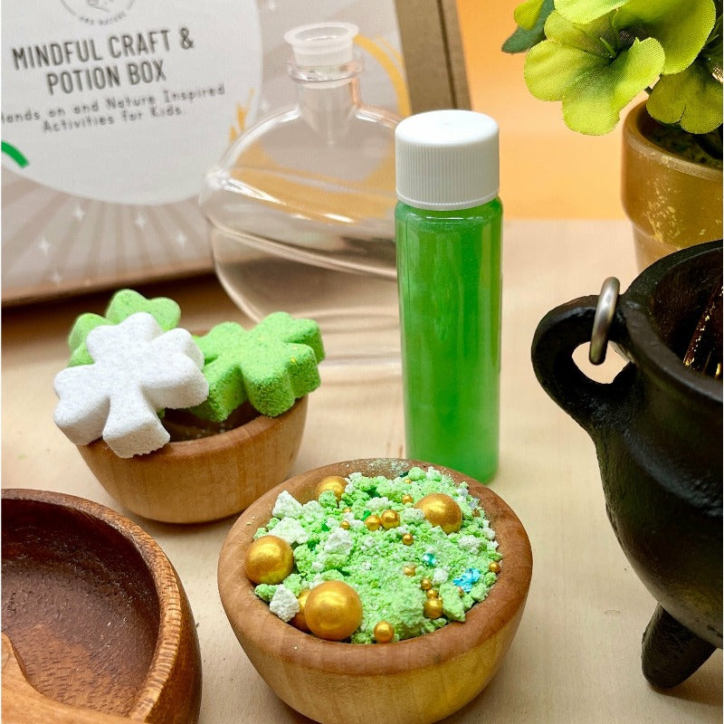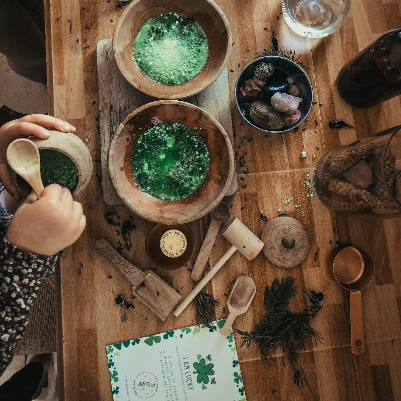 The I Am Lucky Potion Play Kit is a nature-based, mindful play experience designed to help children connect with a sense of confidence, possibility, and inner magic—while creating a meaningful, screen-free moment of connection with you.