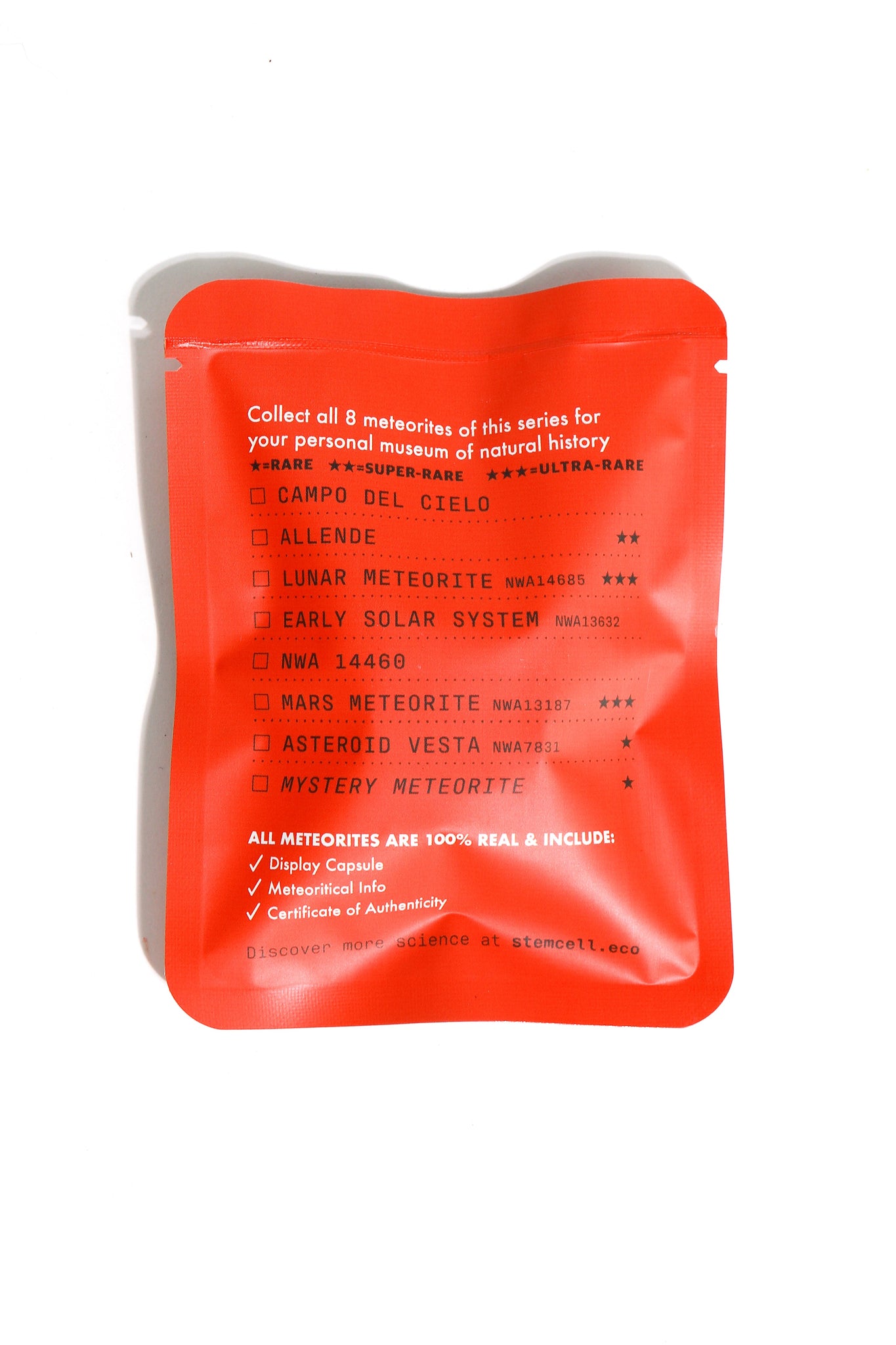 Rarity matters. Lunar and martian meteorites—along with Allende and Vesta specimens—are exceedingly rare in nature, and their market value can be many times the price of this blind bag. Lucky collectors could pull an investment grade meteorite at a great discount.